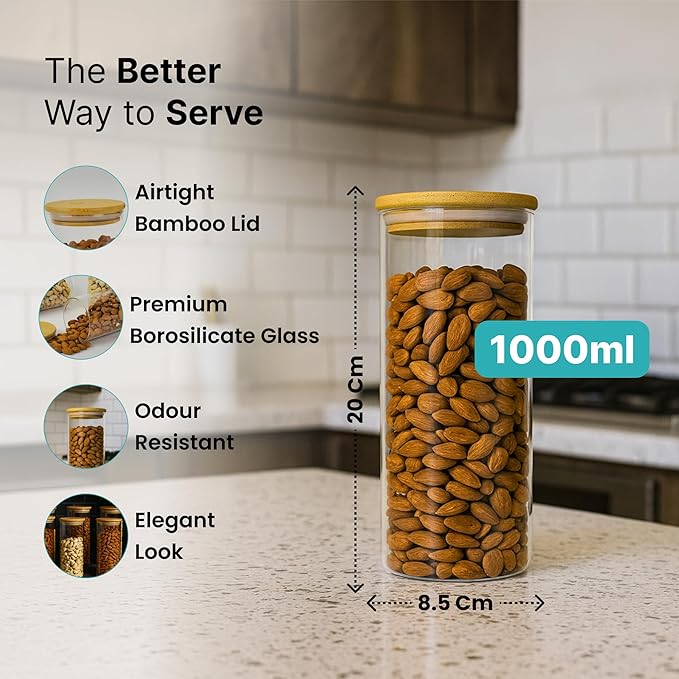 Beyond sheer functionality, The Better Home air tight glass jars are designed to enhance your kitchen’s visual appeal. The clean lines of the glass and the warm, natural texture of the bamboo create a harmonious blend of modern and organic elements.