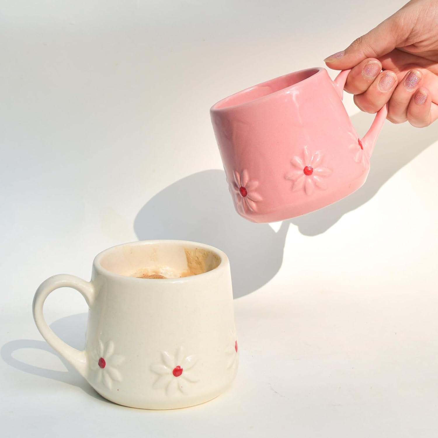 Coffee Ceramic Mug set to Gift to Best Friend, Tea Mugs, Microwave Safe Coffee Mugs, Ceramic Tea Cups (330 ml Each, Fringe Pink)