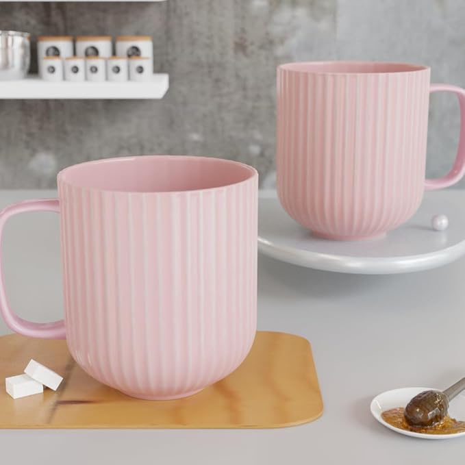 Coffee Ceramic Mug set to Gift to Best Friend, Tea Mugs, Microwave Safe Coffee Mugs, Ceramic Tea Cups (330 ml Each, Fringe Pink)