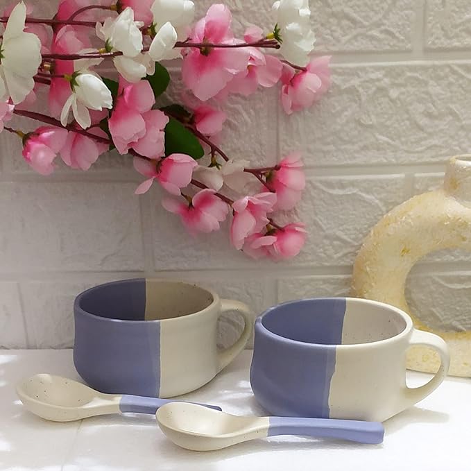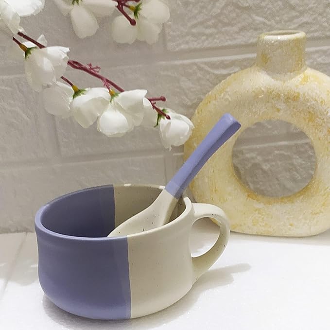 Ceramic Soup Bowl with Spoon/Soup Cups Microwave Safe & Dishwasher Safe Handpainted Soup Bowl Set with Spoon Set of 2