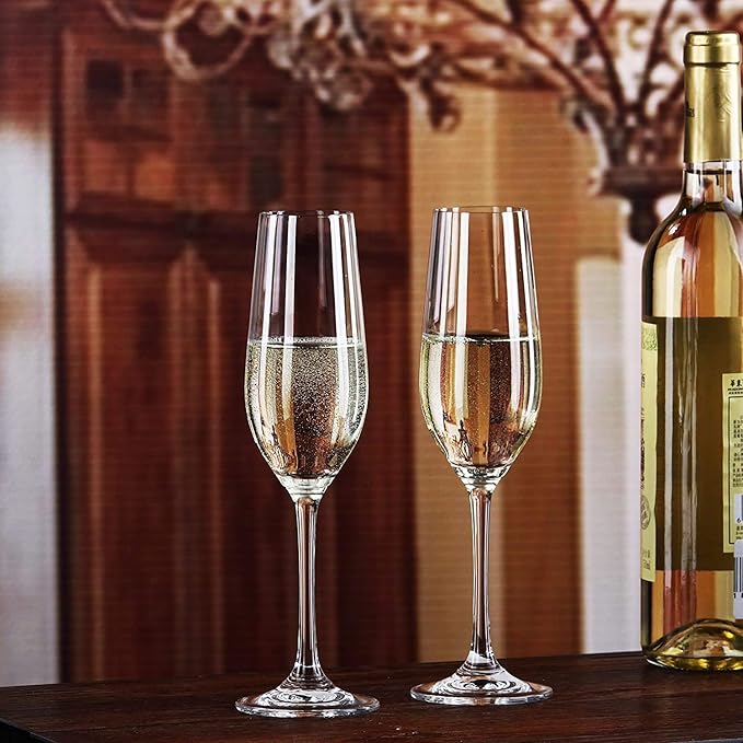 A well-designed champagne flutes glass will guide the bubbles in a steady, persistent stream, which carries the wine’s aromas directly to the nose. As you sip, the aroma and taste are perceived together, creating a unified and heightened sensory experience. The wrong glass can flatten the champagne and dissipate its bubbles quickly, while the right champagne flutes glass will amplify its vibrancy, complexity, and length of finish, making even a modestly priced sparkling wine taste more elevated.