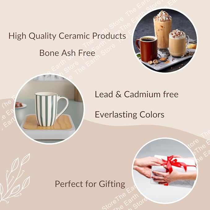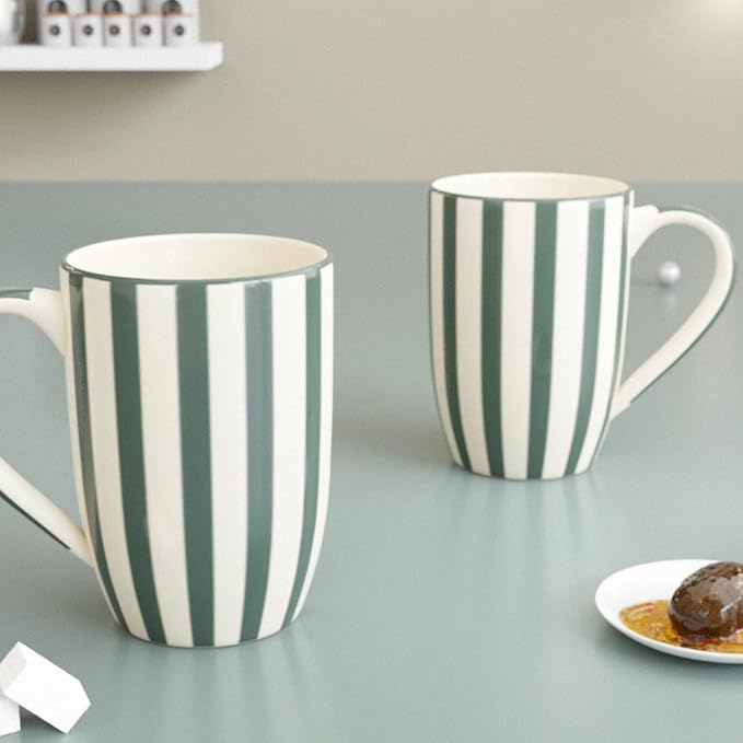 Coffee Mug striped- 420ml Each Capacity, Microwave and Dishwasher Safe, Ceramic Coffee Mug for Every Occasion (Set of 2,6)