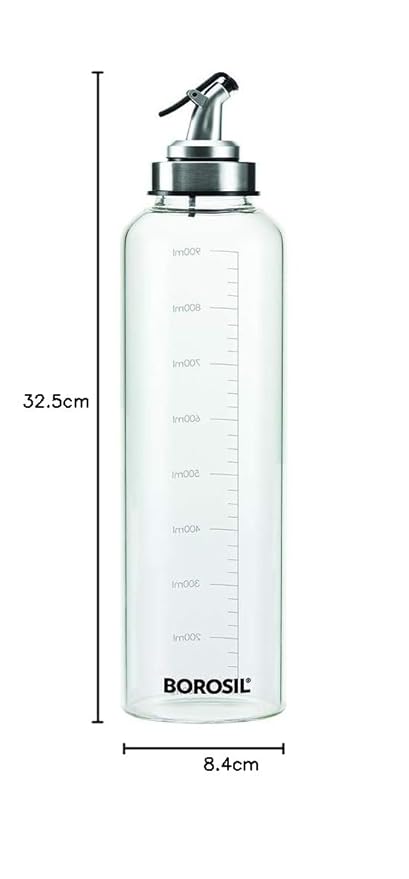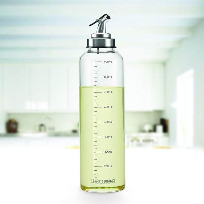 Borosil Glass Oil Dispenser (Transparent and Silver, 1L, Pack of 1)
