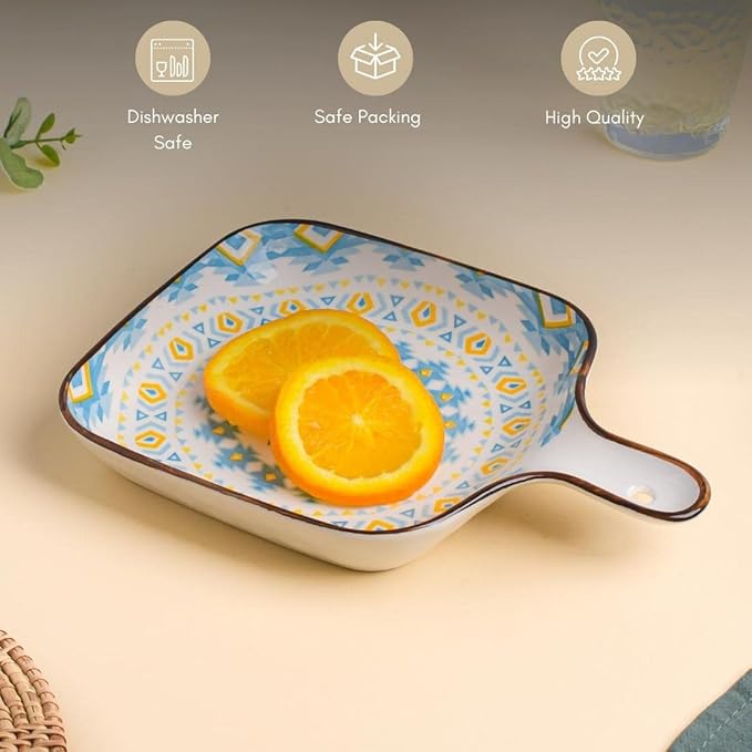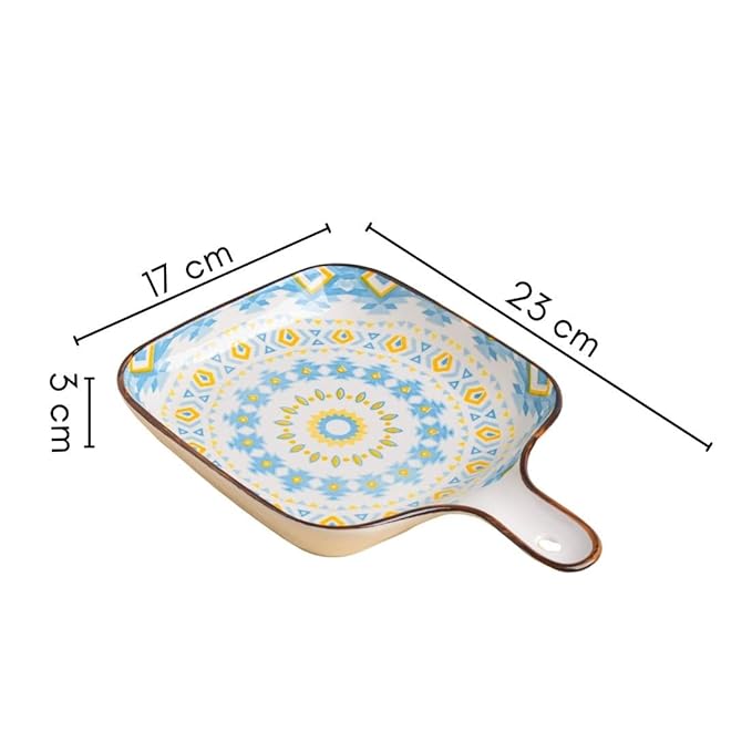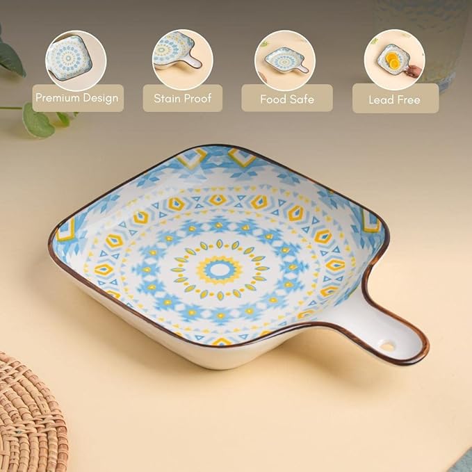 Set of 2 Mandala Ceramic Snack Plates (Multicolor) – Square Dessert Plates with Handle for Baking and Serving Desserts, Snacks & Appetizers | Microwave Safe (9 Inch Each)