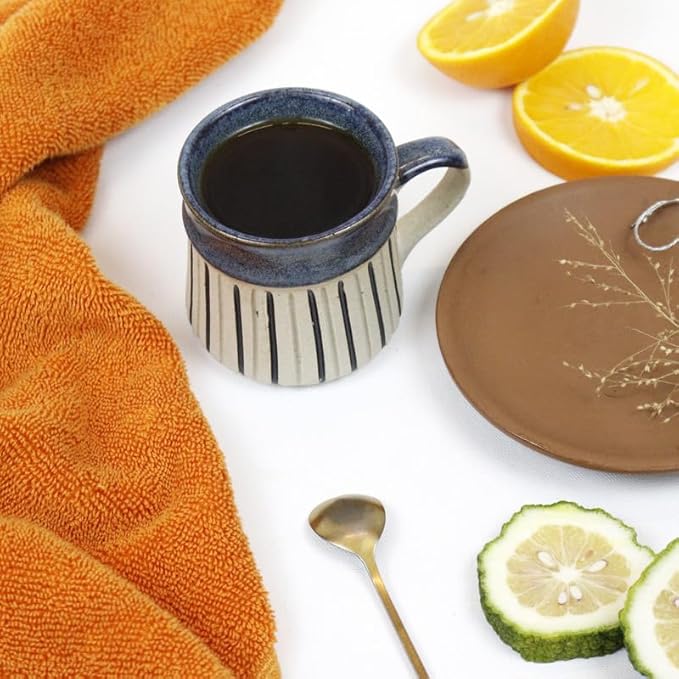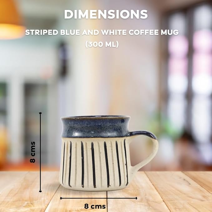 Striped Coffee Tea mugs Set of 2 – 300 ML Ceramic Mugs | Colorful and Stylish Design for Coffee | Tea | and Hot Beverages